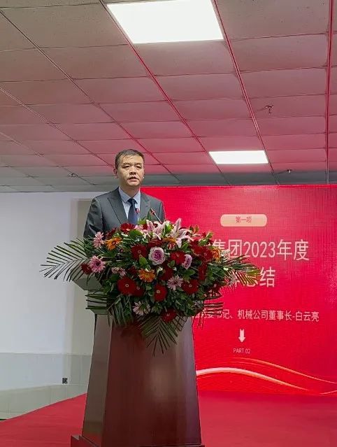 第一項:集團(tuán)公司黨委書記、機(jī)械公司董事長白云亮做《華寶集團(tuán)2023年度工作總結(jié)》
